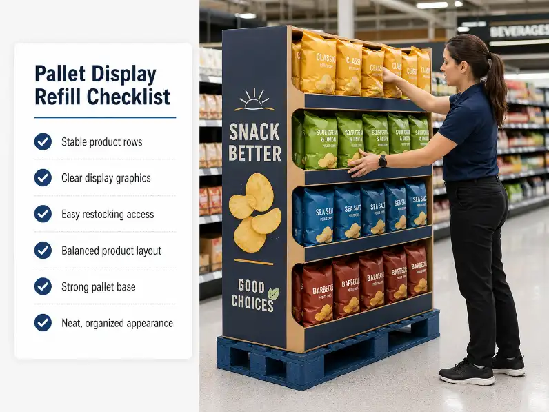 A pallet display can move product fast, but it can also fall apart fast at store level. The problem is not always the structure. In many retail projects, the real weakness is refill logic. If a pallet display is hard to restock, hard to face, or hard to keep balanced after the first few sales, the display loses selling power long before the campaign ends.
