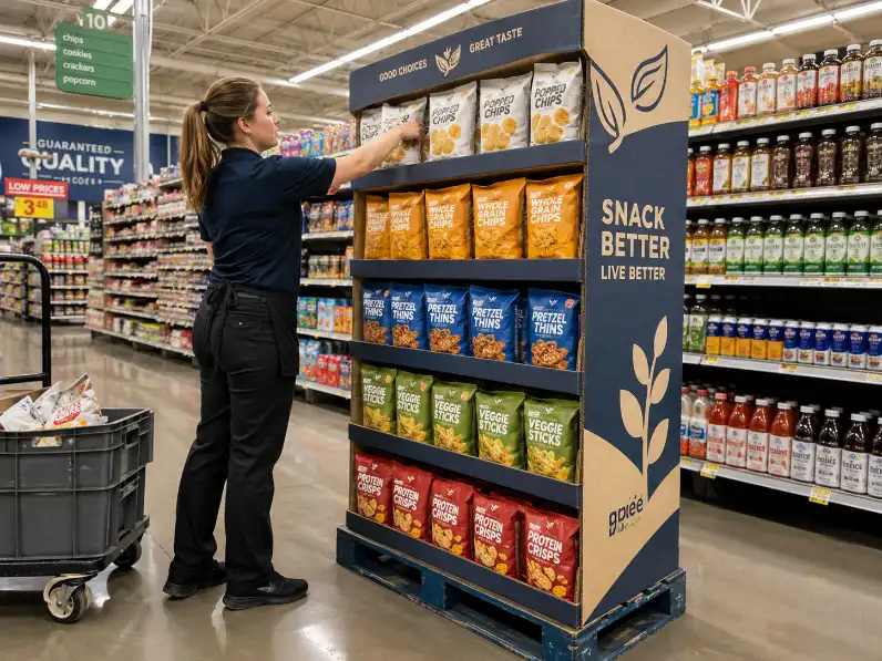 This is where too much design can hurt. Busy visual layouts, weak grouping signals, or unclear SKU separation make the display harder to restore after sell-through. A pallet display already creates presence through scale. The graphics should support order, not add noise.